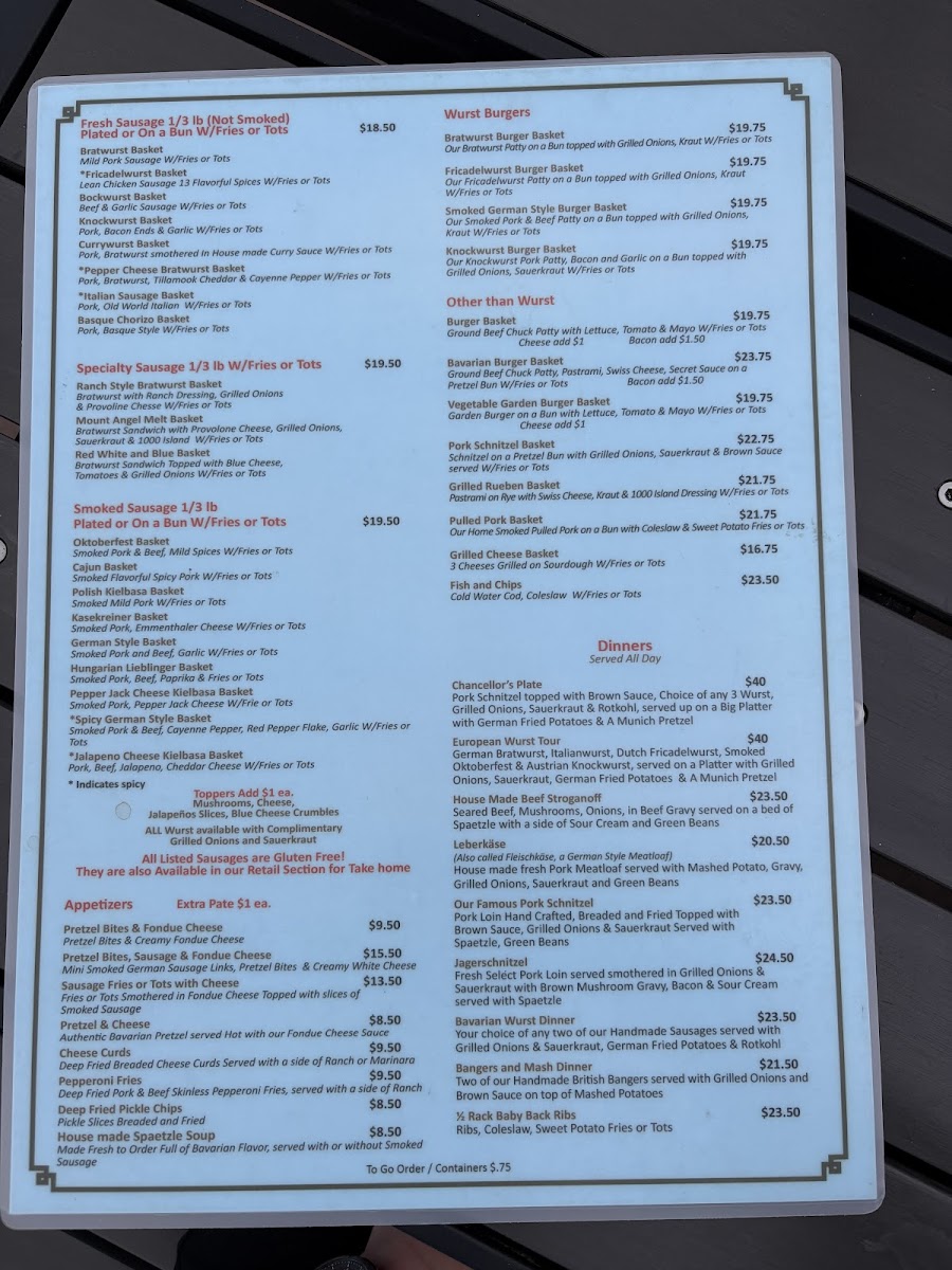 Fresh Sausage 1/3 Lb (Not Smoked) Plated Or On A Bun W/Fries Or Tots
